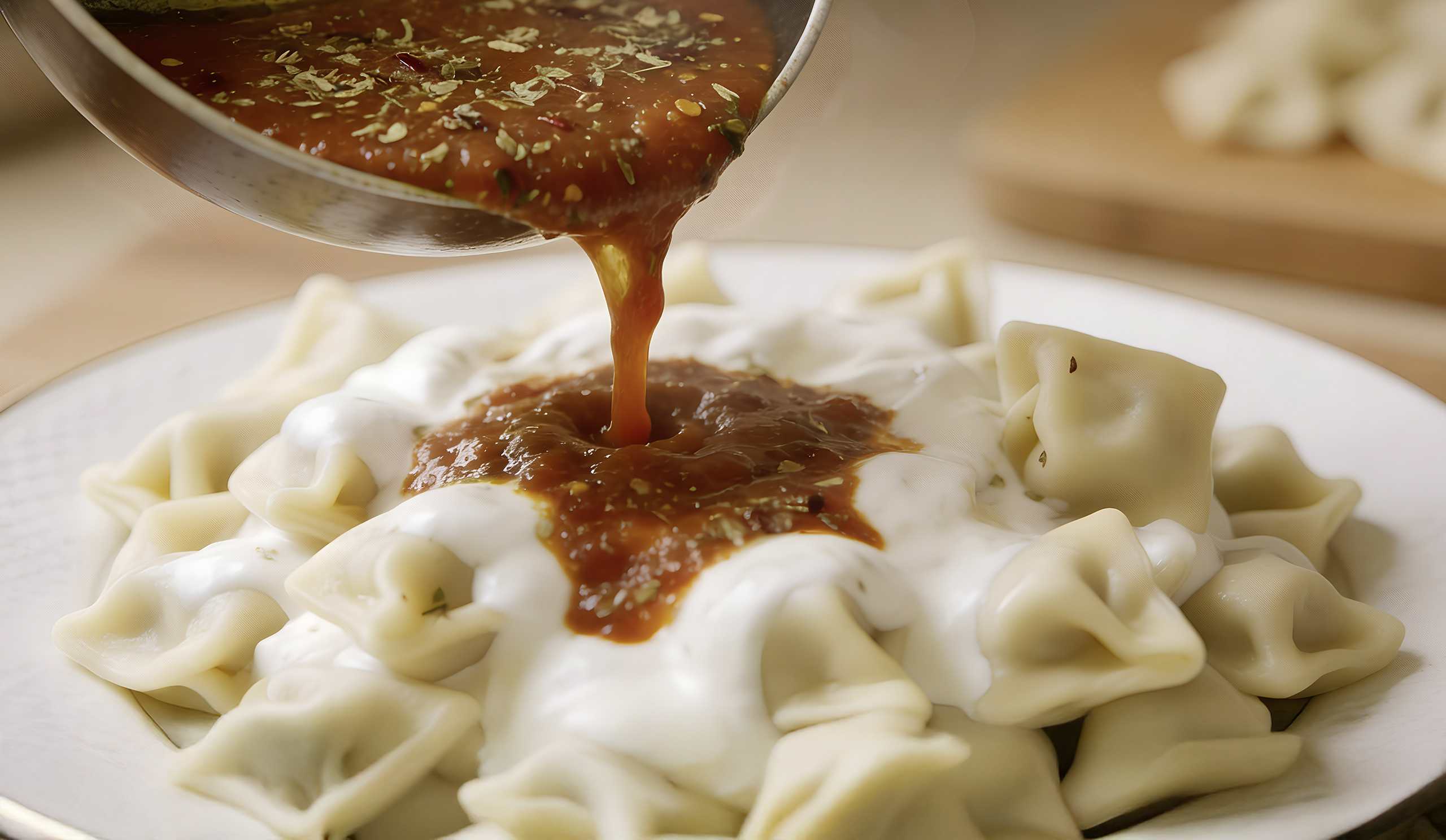 80% dough (wheat flour 73%, water 25,5%, salt, preservatives: potassium sorbate, sodium sorbate, sorbic acid, emulsifier: glycerol monostearate, acidity regulator: citric acid), filling with meat 20% (beef meat 12% in the finished product, onion, breadcrumbs, salt, sunflower oil, red sweet pepper, pepper)