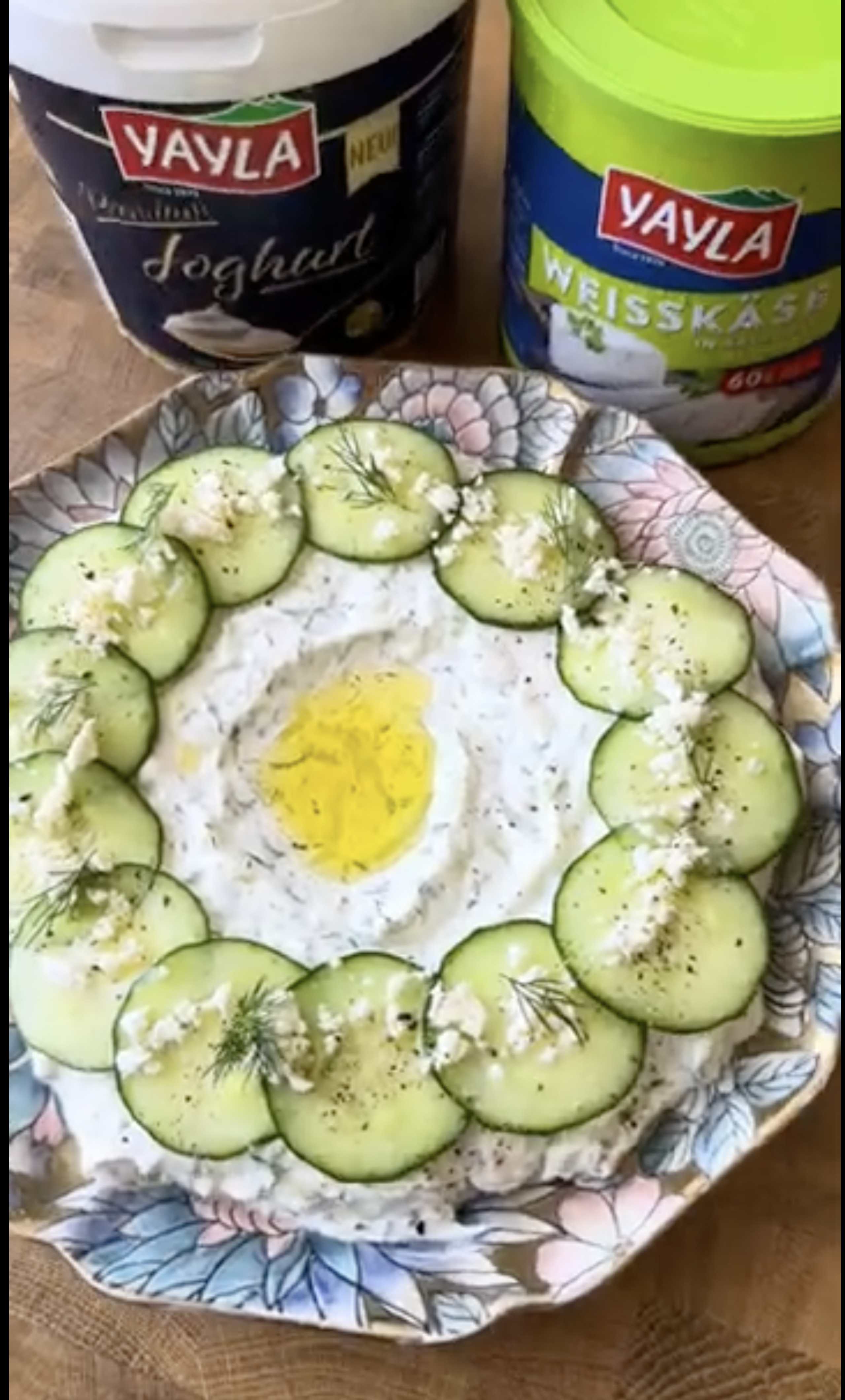 Klasyczny dip (meze) na bazie jogurtu ze świeżymi ziołami.